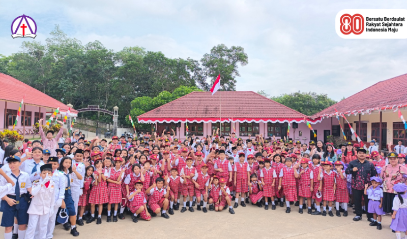Ngabang, 17 Agustus 2025 – Persekolahan Alfa Omega menggelar upacara bendera dalam rangka memperingati Hari Ulang Tahun ke-80 Republik Indonesia yang mengusung tema “Bersatu, Berdaulat, Rakyat Sejahtera, Indonesia Maju.”